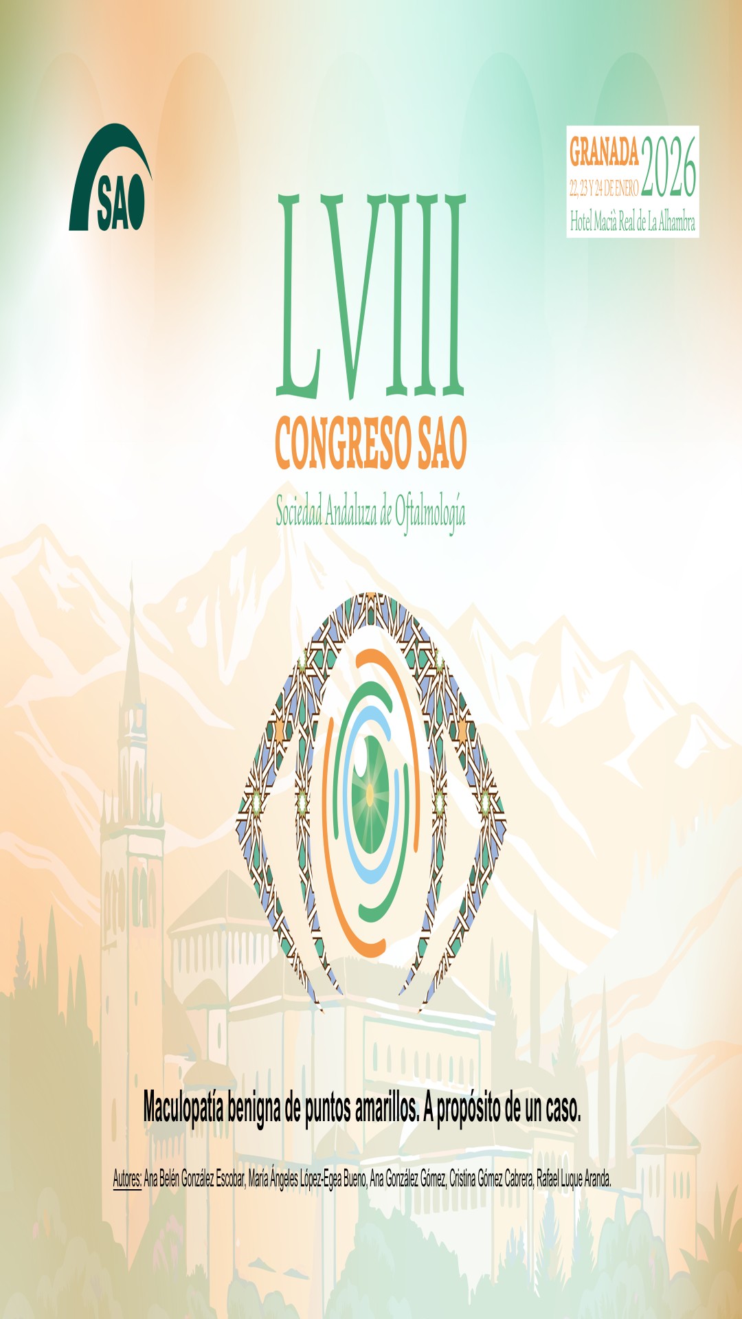 Usted va a votar como Mejor póster informativo: "Maculopatía benigna de puntos amarillos. A propósito de un caso.".
