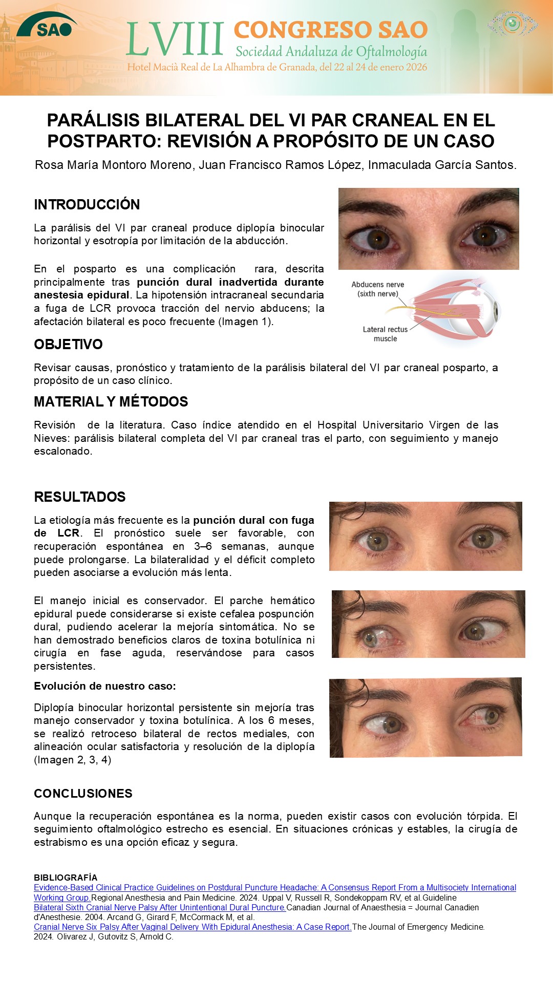 Usted va a votar como Mejor póster informativo: "PARÁLISIS BILATERAL DEL VI PAR CRANEAL EN EL POSPARTO: REVISIÓN A PROPÓSITO DE UN CASO CLÍNICO".